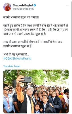 CG CM TWEET | As soon as the result came, CM tweeted and wrote.. Amazing of Swami Atmanand School!