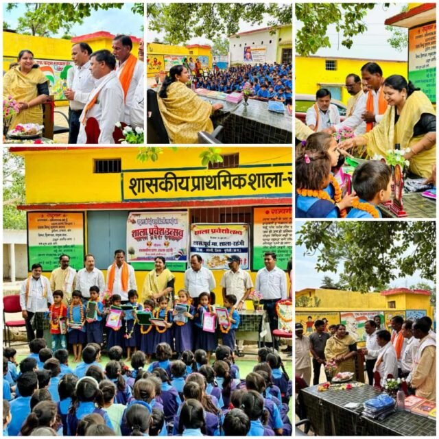 अतः कार्यक्रम की शुरुआत मां सरस्वती प्रतिमा की पूजा एवँ अर्चना के साथ हुई।तत्पश्चात सम्माननीय अतिथियों के द्वारा नवप्रवेशी बच्चो को तिलक लगाकर ,उन्हें ड्रेस पुस्तक और स्लेट वितरित कर सम्मानित किया गया। कार्यक्रम के मुख्य अतिथि खुशबू आदित्य वैष्णव अपने उद्बोधन में बच्चो के बच्चों को न केवल मन लगाकर पढ़ने को कहा बल्कि पालको को भी अपने बच्चो के सम्पूर्ण दायित्व को भी ईमानदारी पूर्वक निर्वहन करते हुए शिक्षक शिक्षिकाओं को हर संभव मदद करने की बात कही।साथ ही इस पुनीत अवसर पर उन्होंने विद्यालय परिवार वाटर कूलर भेंट किया।विकास खंड शिक्षा अधिकारी डी एस राजपूत जी ने समस्त ग्रामवासी और बच्चो को उद्बोधित करते हुए कहा “असल मा स्कूल हा नाव के सरकारी हे असल मा हमर गांव के चिन्हारी हे।”की भावना पर जोर देते हुए विद्यालय से इस भावना के साथ जुड़कर समस्त ग्रामवासी को कंधा से कंधा मिलाकर काम करने की बात कही ।