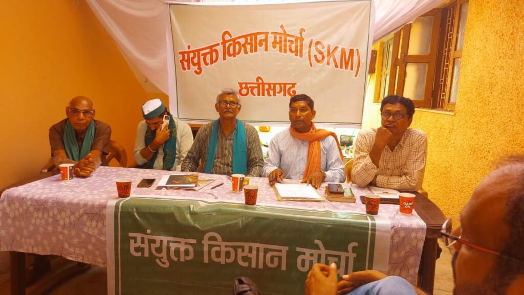 रायपुर:संयुक्त किसान मोर्चा की रायपुर में छत्तीसगढ़ से जुड़े किसान संगठनों की आज दिनांक ५ जुलाई २०२३ को BKU कार्यालय, उदया सोसायटी रायपुर में बैठक आयोजित हुई। बैठक अध्यक्ष मंडल प्रवीन स्योकंद, नंदकुमार विश्वाल एवं सौर यादव की अध्यक्षता में एवं संयुक्त किसान मोर्चा के छत्तीसगढ़ प्रभारी पूर्व विधायक डा सुनीलम जी की उपस्थिति में संपन्न हुई। बैठक का संचालन तेजराम विद्रोही ने किया।बैठक में छत्तीसगढ़ में विभिन्न जनांदोलनों का समर्थन करते हुए प्रस्ताव पारित किए गए जिनमें बस्तर संभाग में चल रहे 24 अनिश्चितकालीन धरना, हसदेव को बचाने आंदोलन, गेल पाइपलाइन प्रभावित किसानों का आंदोलन आदि शामिल हैं।