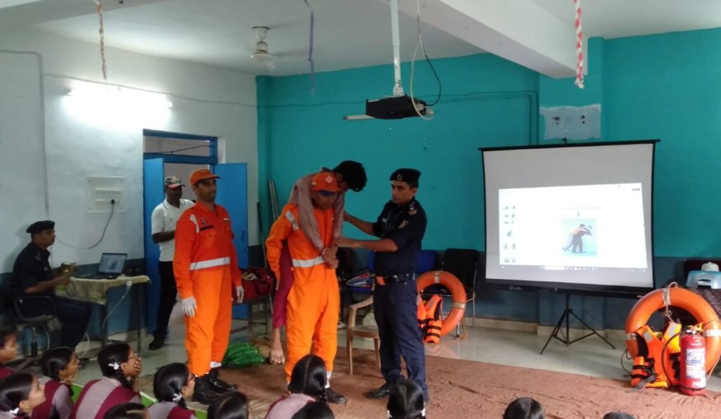 तिल्दा:रायखेड़ा विद्यालय में आपदा प्रबंधन पर कार्यक्रम संपन्न,,,तिल्दा नेवरा _स्वामी आत्मानंद उत्कृष्ट विद्यालय रायखेड़ा में एन.डी.आर.एफ .थर्ड बटालियन मुंडली ओडिशा (आर.आर.सी. भिलाई )के तत्वाधान में राष्ट्रीय आपदा मोचन बल द्वारा एक कार्यक्रम का आयोजन किया गया था ।जिसमें आपदा की स्थिति में एनडीआरएफ के सब इंस्पेक्टर अभिषेक मिश्रा ने बताया भारत में एनडीआरएफ के 16 बटालियन कार्यरत हैं ।जबकि एक बटालियन में 18 टीमें होती है ।