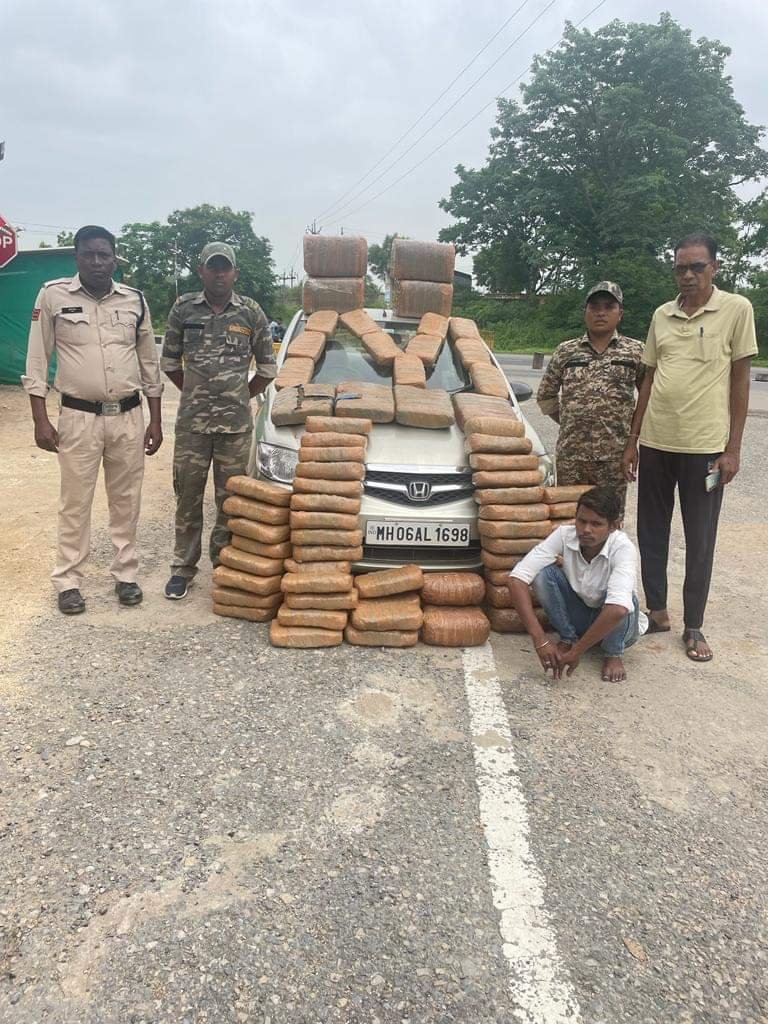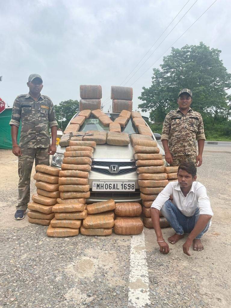 सायबर सेल महासमुन्द एवं थाना सिघोंडा की संयुक्त कार्यवाही।छत्तीसगढ राज्य के सीमावर्ती राज्य ओडिशा से लगातार अवैध मादक पदार्थ गांजा का परिवहन महासमुंद के रास्ते किये जाने की सूचना पर पुलिस अधीक्षक महासमुन्द धर्मेन्द्र सिंह (IPS) ने समस्त थाना/चौकी प्रभारियों एवं सायबर सेल की टीम कोे नशीली पदार्थ, अवैध शराब तथा अवैध मादक पदार्थ गांजा की तस्करी करने वाले लोगो के खिलाफ कार्यवाही तथा सघन चेकिंग अभियान करने हेतु निर्देशित किया गया था। कि दिनांक 10.08.2023 को मुखबीर से सूचना मिली कि बरगढ ओड़िशा से अवैध मादक पदार्थ गांजा का बडा खेप एक सिल्वर रंग के होण्डा सिटी कार में ओडिशा से महासमुन्द होते हुये रायपुर छत्तीसगढ होते हुये महाराष्ट्र ले जाने वाला है। जिस पर तत्काल पुलिस अधीक्षक महासमुन्द धर्मेन्द्र सिंह के द्वारा थाना सिंघोडा प्रभारी एवं सायबर सेल की टीम को त्वरित कार्यावाही करने हेतु निर्देशित किया व महासमुंद जिले में प्रवेश करने वाले समस्त पाईंटों पर भी बल तैनात कर संदिग्ध वाहन की जांच कर रही थी तभी बरगढ ओडिशा की तरफ से एक सिल्वर रंग के होण्डा सिटी क्रमांक MH 06 AL 1698 महासमुन्द की ओर आ रही थी। जिसे मुखबिर के बताये अनुसार एन.एच.53 रोड ग्राम रेहटीखोल के पास पहुचा जिसे घेराबंदी कर रोका गया। वाहन में 01 व्यक्ति सवार मिला जिससे नाम पता पुछने पर व्यक्ति ने अपना नाम (01) दीपक साहू पिता मंथीर साहू उम्र 27 वर्ष सा. रामनगर अम्बेडकर नगर थाना सुपेला भिलाई दुर्ग का होना बताये। जिनसे ओड़िशा आने का कारण व कार में क्या रखना, पूछे जाने पर जवाब नही दे रहा था। पुलिस की टीम को संदेह होने पर उक्त व्यक्ति से कडाई से पूछताछ करने पर टाल मटोल व गोलमोल जवाब देने लगे जवाबो में भिन्नता एवं असमानता पाये जाने पर संदेह प्रतीत हुआ है जिसके आधार पर वाहन की तलाशी ली गई। वाहन के पीछे सीट व डिक्की में बोरी भरा हुआ था। 08 नग प्लास्टिक बोरिया भरा हुआ था जिसे खोलकर देखने पर अवैध मादक पदार्थ गांजा मिला जिसे खोल कर देखने पर भी अवैध मादक पदार्थ गांजा मिला। वाहन में कुल 08 नग प्लास्टिक बोरीयों में प्रत्येक बोरी में 25-25 किलों ग्राम कुल 200 किलो ग्राम मादक पदार्थ गांजा मिला। वाहन पर अवैध गांजा परिवहन करते पाये जाने पर मौके पर आरोपी को गिरफ्तार कर 02 क्विंटल गांजा कीमती लगभग 5000000 रूपये एवं होण्डा सिटी कार कीमती लगभग 250000 रूपये कुल जुमला कीमती लगभग 52,50,000 रूपये जप्त किया गया।