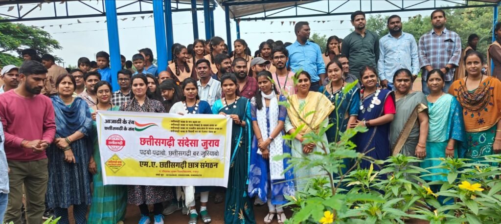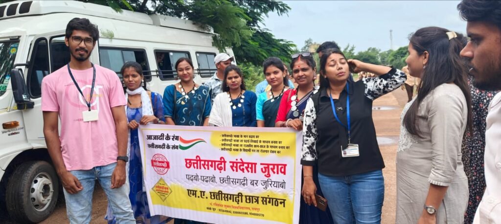 छात्र संगठन ने छत्तीसगढ़ी भाषा को बढ़ावा देने के उद्देश्य से छत्तीसगढ़ी संदेश यात्रा पढ़बो-पढ़ाबो छत्तीसगढ़ी,का पद यात्रा निकाले….. देखिए तस्वीरें