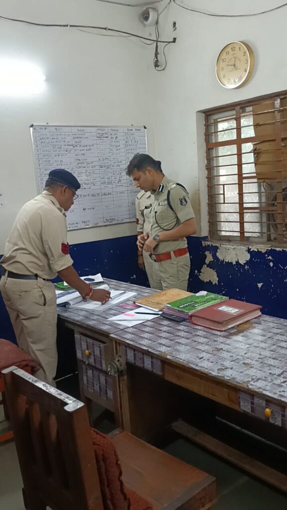 रायपुर : पुलिस अधीक्षक प्रशांत अग्रवाल द्वारा आज 16 सितंबर को थाना खरोरा एवं आरंग का आकस्मिक निरीक्षण किया गया। निरीक्षण के दौरान वरिष्ठ पुलिस अधीक्षक द्वारा थाने स्तर पर संधारित किये जाने वाले समस्त दस्तावेजो, रजिस्टरों व फाइलों के नियमित व समुचित संधारण हेतु समुचित निर्देश दिए गए। थाने के कामकाज की समीक्षा करते हुए थाना खरोरा एवं आरंग के थाना प्रभारियों एवं विवेचकों के प्रकरणों की उनके द्वारा की जा रही कार्यवाही की समीक्षा की गई तथा लंबित अपराध, शिकायत, मर्ग के प्रकरणों के डायरी एवं दस्तावेजों का अवलोकन कर लंबित प्रकरणों के शीघ्र निराकरण करने निर्देशित किया गया।