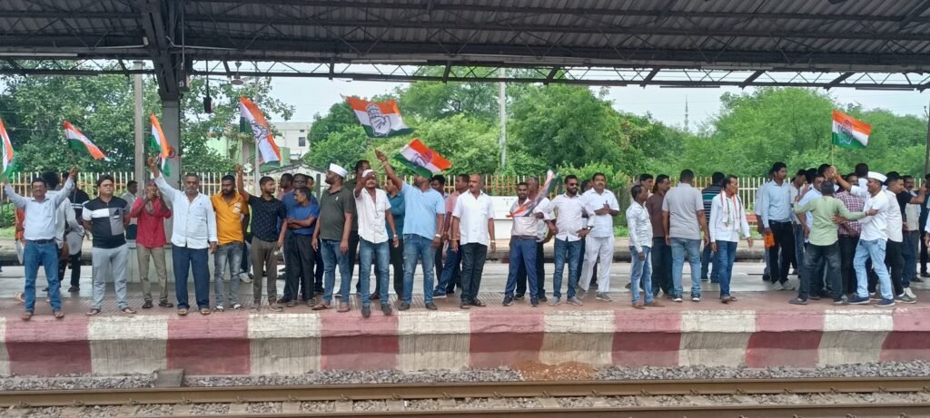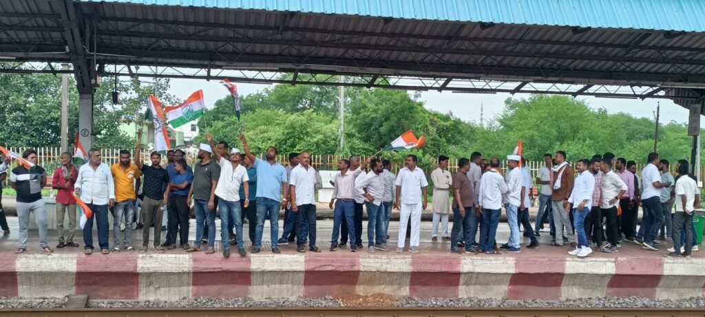 राहुल गांधी का स्वागत करने भारी संख्या में कांग्रेसी नेता रेलवे स्टेशन पहुंचे।