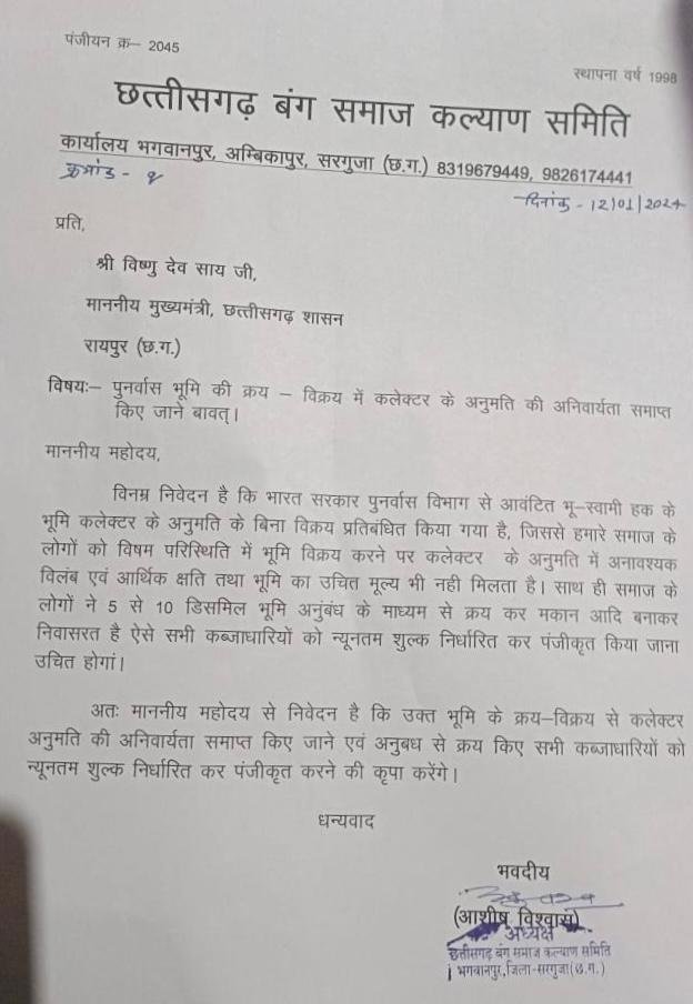 कांकेर पंखूजर: 7 जनवरी 2024 को छत्तीसगढ़ कांकेर जिले के पखांजूर निवासी असीम राय की स्थानीय बजार मे लगभग संध्या 8:00 बजे गोली मार कर नृशन्स हत्या कर दी गईं है। इस घटना से छत्तीसगढ़ बंग समाज मे गहरा आक्रोश व्याप्त है। स्व. आसिम राय बंग समाज के अध्यक्ष व भाजपा के जिला उपाध्यक्ष एवं नगर पंचायत के पूर्व अध्यक्ष थे। ऐसे कद्दावर राजनैतिक व समाजिक व्यक्ति के हत्या से गहरा साजिश को इंगित करता है। वर्तमान प्राप्त समाचार के अनुसार इस प्रकरण मे पुलिस को बड़ी सफलता प्राप्त हुई है अत : क्षेत्र मे चर्चानुसार इस प्रकरण मे और अधिक षड्यंत्र की संभावना से इंकार नहीं किया जा सकता है। इस संपूर्ण प्रकरण की उच्चस्तरीय कमेटी से जांच कराने एवं दोषियो को कठोर से कठोर सजा की मांग छत्तीसगढ़ बंग समाज के पदाधिकारी ने मुख्यमंत्री से मिलकर किया एवं ज्ञापन सौंपकर आपना पक्ष रखा साथ ही मुख्यमंत्री से पुनर्वास भूमि की क्रय विक्रय में कलेक्टर की अनुमति की अनिवार्यता समाप्त करने की मांग की है।भारत सरकार पुनर्वास विभाग से आवंटित भू स्वामी हक के भूमि कलेक्टर के अनुमति के बिना बेचना प्रतिबंधित है जिसे समाज के लोगों को विषम परिस्थिति में भूमि विक्रय करने कलेक्टर के अनुमति लेने में अनावश्यक विलंब एवं आर्थिक छति होता है समाज के लोग भू अनुबंध के माध्यम से क्रय कर मकान बनाकर निवासरत है ऐसे सभी कब्जाधारियों को न्यूनतम शुल्क निर्धारित कर पंजीकृत करने की आदेशित करने की मांग की है मुख्यमंत्री बंग समाज के प्रतिनिधियो की मांग पर उचित विचार करने की बात की है।