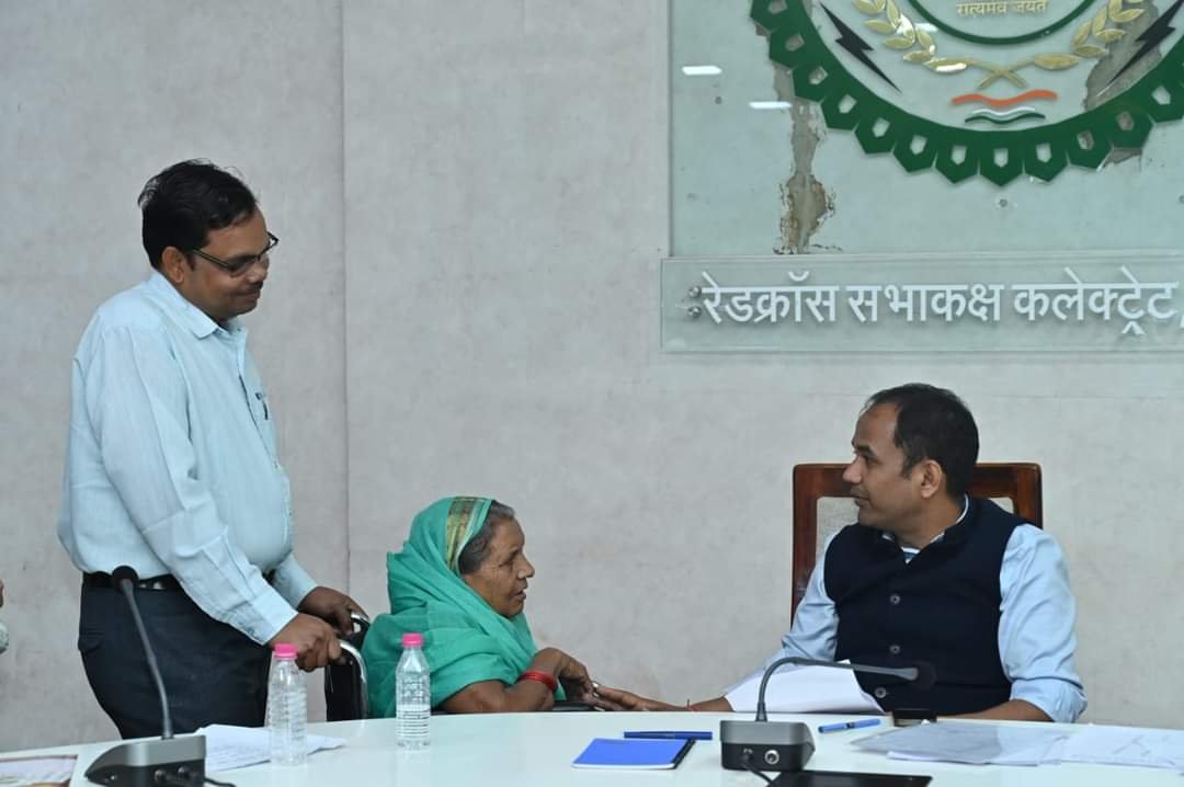 कलेक्टर जन चौपाल में सेरीखेड़ी की 85 वर्ष की महिला जगरबती कलेक्टर डॉ. गौरव कुमार सिंह से मिलने पहुंची,बताई जमीनी समस्या