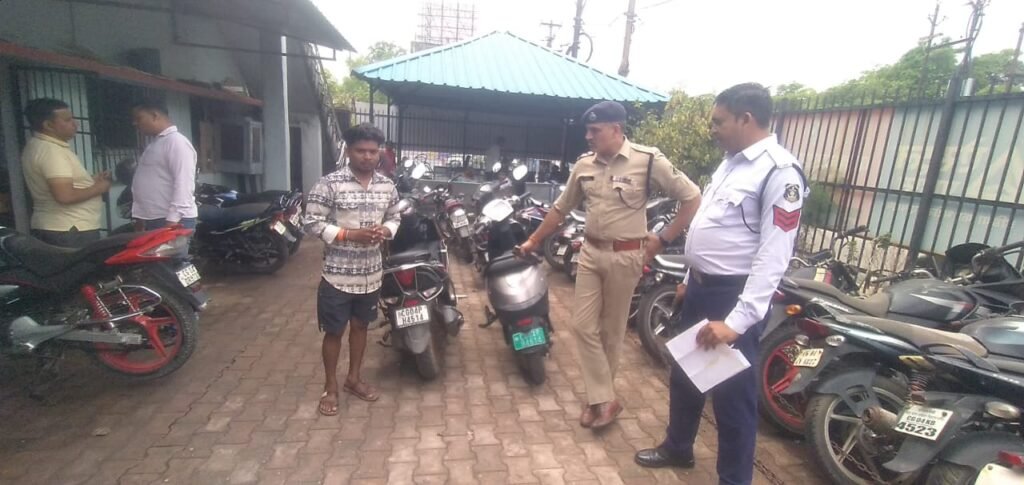ई-चालान से बचने दूसरे वाहन का नम्बर प्लेट उपयोग करने वाले फर्जी वाहन चालक के विरूद्ध पुलिस की कार्यवाही