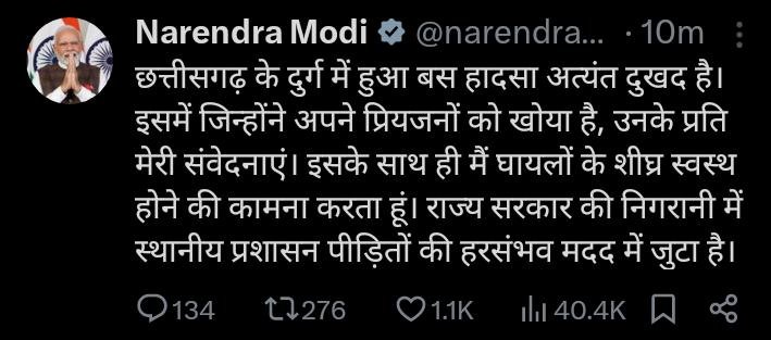 वहीं छत्तीसगढ़ के सीएम विष्णु देव साय ने भी शोक प्रकट किया है। इस हादसे को कलेक्टर ऋचा प्रकाश चौधरी ने मजिस्ट्रियल जांच के आदेश दिए हैं। कलेक्टर ने आदेश जारी किया इस आदेश में कहा गया है कि जो भी जिम्मेदार दोषी पाए जाएंगे, उस पर कार्रवाई की जाएगी।अब यह कमेटी पूरी जांच कर अपनी रिपोर्ट कलेक्टर को सौंपेगी कि इस हादसे के पीछे की क्या वजह थी। इसके साथ ही जिला प्रशासन ने परिजनों को विश्वास दिलाया है कि हादसे की निष्पक्ष जांच होगी।