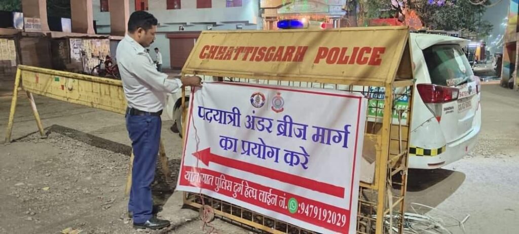 जितेन्द्र शुक्ला, पुलिस अधीक्षक दुर्ग के द्वारा दर्शन के लिए डोगरगढ़ जाने वाले पदयात्रियों एवं वाहन चालको के सुरक्षित आवागमन के लिए दिये गये निर्देश पर सतीष ठाकुर, सदानंद विध्यराज, उप पुलिस अधीक्षक (यातायात)के नेतृत्व में दुर्ग पुलिस द्वारा कुम्हारी से अंजोरा बाईपास तक सुरक्षित कोरिडोर बनाकर रूट निर्धारित किये गये है। जिसमें सुरक्षा की दृष्टि से 04 पेट्रोलिंग वाहन तैनात किये गये है, जो लगातार 24 घण्टे 09 अप्रैल से 17 अप्रैल तक पेट्रोलिंग करेगें। जो लाउड स्पीकर के माध्यम से पदयात्रियों को बाएं चलने के निर्देश देते रहेगें और इस मार्ग में किसी प्रकार का अवरूद्ध उत्पन्न नहीं होने देगें। इसी प्रकार पदयात्रियो के सहायता के लिए अस्थाई पुलिस सहायता केन्द्र बनाये गये है।
