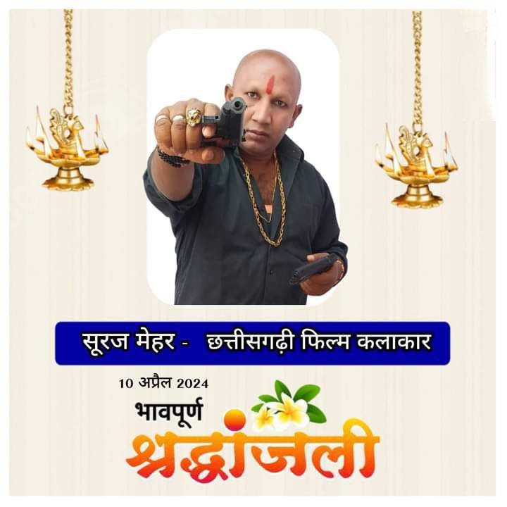 रायपुर: छत्तीसगढ़ी फिल्म इंडस्ट्री के मशहूर विलेज सूरज मेहर का सड़क दुर्घटना में मृत्यु हो जाना जानकारी के मुताबिक फिल्म आखिरी फैसला की क्लाइमेक्स की शूटिंग पूर्ण होने के बाद बिलासपुर से रायगढ़ जा रहे थे उसे दौरान उनकी कर की एक्सीडेंट हो गई घायल अवस्था में उनको जब अस्पताल ले जाया जा रहा था तब उनकी मौत हो चुकी थी डॉक्टरों ने पुष्टि कर दी कि सूरज मेहर अब नहीं रहे।जानकारी के बताने के अनुसार आज 10 अप्रैल को उनकी सगाई थी मगर सगाई मातम में बदल गई।