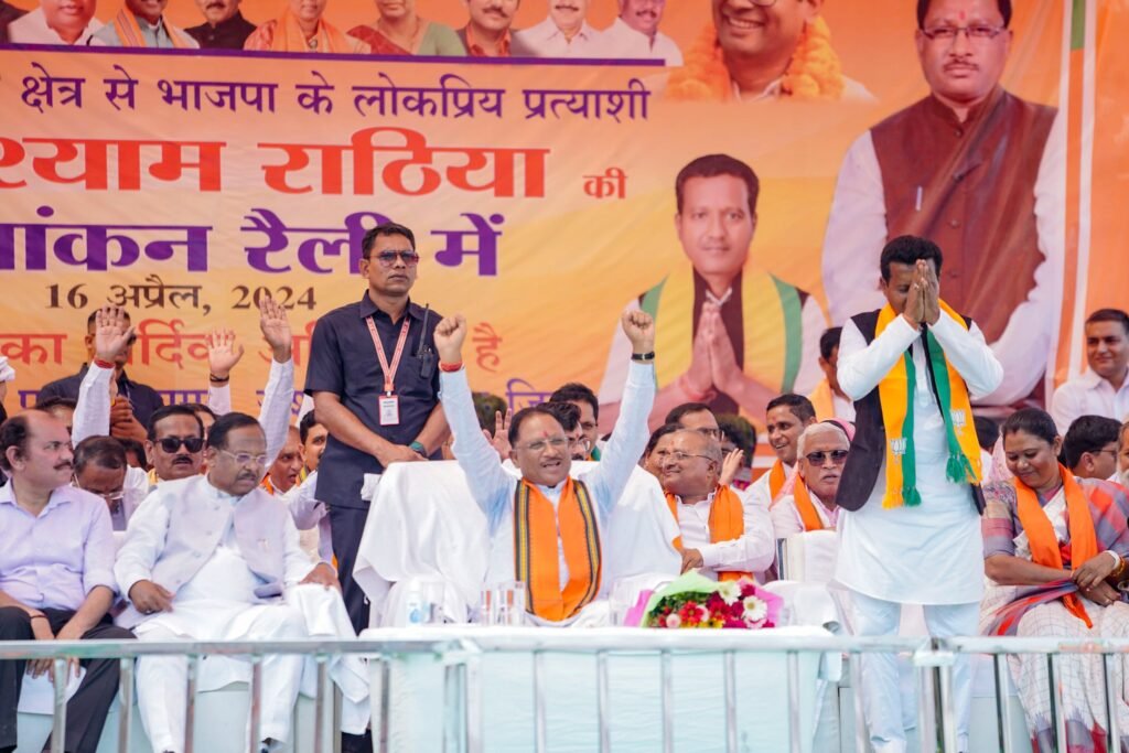 राधेश्याम राठिया के लिए मांगे वोट मुख्यमंत्री विष्णु देव साय ने कहा कि हमारे प्रत्याशी राधेश्याम राठिया जी को जनसेवा का लम्बा अनुभव है। उन्होंने सरपंच से लेकर जनपद अध्यक्ष, जिला पंचायत सदस्य, एसटी मोर्चा और किसान मोर्चा सब में काम किया। राधेश्याम राठिया को काम करने का लम्बा अनुभव है और वे मृदुभाषी और कर्मठ हैं। उनको कमल छाप पर बटन दबाकर भारी मतों से जिताकर लोकसभा भेजना है। ये आप सभी से आग्रह करने आया हूँ।