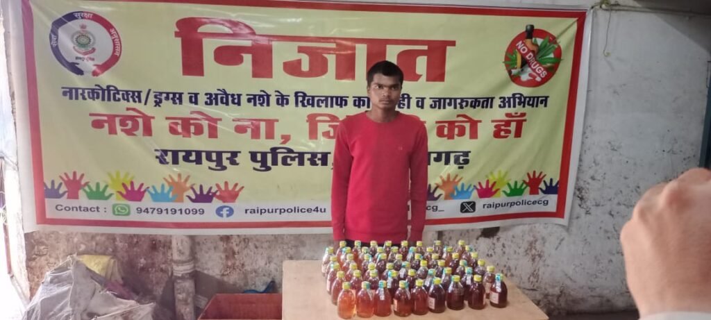 तिल्दा नेवरा: रायपुर पुलिस द्वारा चलाये जा रहे नशे के विरुद्ध अभियान ” निजात ” के तहत 55 पौवा देशी मशाला कुल मात्रा 9.900 बल्क लीटर किमती 6050/- शराब एवं TVS एक्सल मोटरसाइकिल के साथ आरोपी डामर सिंह कन्नौजे गिरफ्तार
