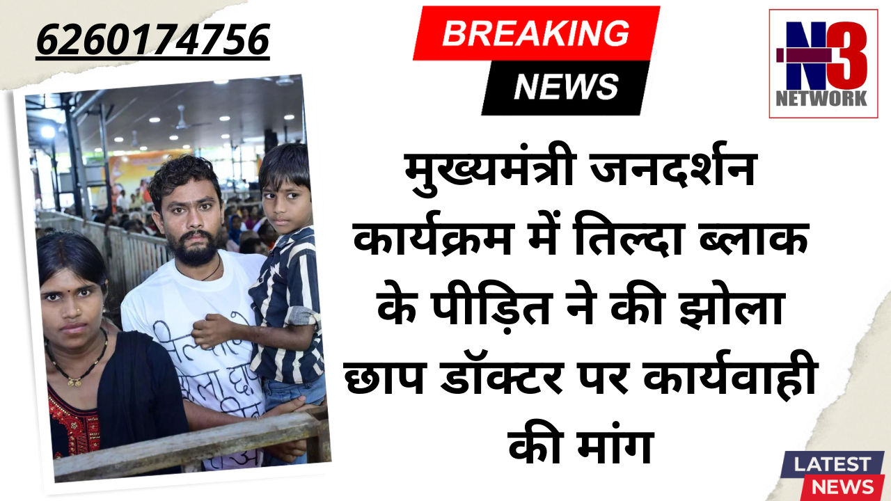 न्यूज डेस्क रायपुर : मुख्यमंत्री जनदर्शन कार्यक्रम में आज तिल्दा नेवरा ब्लॉक के ग्राम तुलसी निवासी अनुज बंजारे अपनी पत्नी पूर्णिमा और बेटे दीपेश बंजारे के साथ जनदर्शन कार्यक्रम पहुंचे थे। उन्होंने मुख्यमंत्री विष्णु देव साय को बताया कि वो तिल्दा में ही रोजी मजदूरी का काम करता है 24 अगस्त 2023 को उनके पुत्र का बायां हाथ खेलते हुए फैक्चर हो गया। बच्चे की तकलीफ को देखते हुए तत्काल स्थानीय चिकित्सक के क्लिनिक जाकर उसका इलाज करवाया, जहां के डॉक्टरो ने 1700 रुपए लेकर प्लास्टर किया। आराम ना मिलने पर बेटे को दूसरे अस्पताल ले गए, जहां पता चला कि प्लास्टर गलत तरीके से किया गया है, जिसके कारण हाथ में मवाद और सूजन आ गया है। जिसके बाद वहां से रायपुर मेकाहारा रेफर किया गया।