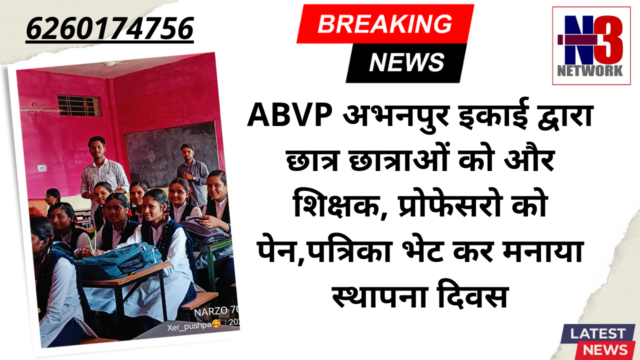 अभनपुर : विश्व के सबसे बड़े राष्ट्रवादी छात्र संगठन अखिल भारतीय विद्यार्थी परिषद के अभनपुर इकाई द्वारा 9 जुलाई अखिल भारतीय विद्यार्थी परिषद के स्थापना दिवस को राष्ट्रीय विद्यार्थी दिवस के रूप में मानती है, आज ही के दिन एबीवीपी जैसे राष्ट्रवादी छात्र संगठन की स्थापना हुई थी तब से लेकर आज तक विद्यार्थी परिषद 9 जुलाई को राष्ट्रीय विद्यार्थी दिवस के रूप में मनाते आ रही है। छात्र – हित, राष्ट्र – हित में कार्य करने वाला एक ऐसा छात्र संगठन जो 75वें वर्ष को अमृत महोत्सव के रूप में मनाते हुए 76 वर्ष मे भी अपने राष्ट्रीय पुनर्निर्माण का अध्याय लेकर राष्ट्र को सर्वोपरि मान कर व्यक्ति से व्यक्तित्व निर्माण का कार्य करते हुए देश में अपने अनेक योगदान दिए है।