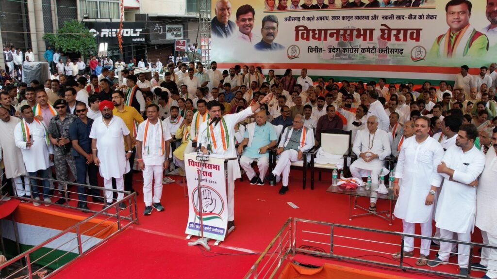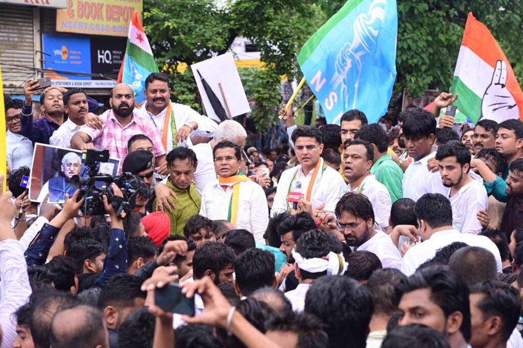 एआईसीसी के महासचिव एवं छत्तीसगढ़ प्रभारी सचिन पायलट ने कहा कि प्रदेश कांग्रेस अध्यक्ष दीपक बैज को धन्यवाद देते हुये कहा आपके आव्हान पर एवं समूचे कांग्रेस कार्यकर्ताओं का यहां पर एकत्रित होना इस विधानसभा के बाहर प्रदेश के लोगो की पीडा और उनके जख्म को जगजाहिर करते हुये न्याय की मांग करने के लिये और सरकार की नींद खोलने के लिये सभी कार्यकर्ताओं को आमंत्रित किया। लोकतंत्र में सबसे बड़ी ताकत जनता की होती है और संख्या बल की होती है। छत्तीसगढ़ में कांग्रेस जीवित है, ताकतवर है और जवाबदेही तय करने के लिये तैयार है। छत्तीसगढ़ में पांच साल कांग्रेस की सरकार रही है और जो पूर्ववर्ती कांग्रेस सरकार ने कानून और नियम बनाये उनको खत्म करके भाजपा की डबल इंजन की सरकार ने जनता के साथ अन्याय करने का काम किया। पिछले 7 महीने में जो हत्या, बलात्कार, लूटपाट, चोरी, डकैती हुई है और जो गोलियां चली है उसकी जवाबदेही तय करने को सरकार को मजबूर करने का समय आ चुका है। एक राजनैतिक कार्यकर्ता होने के नाते हमें याद रखना होगा हम कांग्रेस पार्टी के कार्यकर्ता है। ये 139 साल पुरानी कांग्रेस पार्टी महात्मा गांधी की पार्टी है, अहिंसा और विन्रमता और मजबूती से अपनी बात रखनी होगी। 2018 के बाद भूपेश बघेल प्रदेश अध्यक्ष थे और मैं राजस्थान में प्रदेश अध्यक्ष था, वैसी ही आक्रमकता से हमें लड़ना है। सरकार जो घमंड में है जो कांग्रेस के लोगों के ऊपर झूठे मुकदमे करती है। बलौदाबाजार के प्रकरण में सतनामी समाज के खिलाफ साजिश पूर्ण कार्यवाही करके लोगों में बंटवारा करना चाहती है। कोई भी समाज हो विशेष रूप से सतनामी समाज उसके खिलाफ कोई षड्यंत्र रचेगा। कांग्रेस के लोगो को जेल में बंद करोगे और अपनी नाकामी छुपाने के लिये कांग्रेस के लोगो के ऊपर मुकदमे करोगे, आम जन को परेशान करोगे उसका विरोध होगा। वहां पर बाहर के कौन लोग आये थे सरकार जवाब दे, सूचना तंत्र पूरी सरकार कहा सो रहा था? ये सरकार रायपुर से नहीं चलती, ये सरकार दिल्ली से चलती है। यहां के मुख्यमंत्री और मंत्री को पता नहीं हो क्या रहा है? यहां पर वो जो लिखकर दिल्ली से भेज देते है उस काम को भाजपा सरकार करती है। आज समय है कांग्रेस पार्टी को एकजुटता से आगे बढ़ने का, आज पूरी जनता उमीद करती है कांग्रेस पार्टी पूरी आवाज को उठायेगी। कांग्रेस के बड़ी संख्या में और भारी बारिश के बावजूद और सरकार चारो तरफ पुलिस ने बैरीगेट्स लगाकर रोकने का काम किया। उसके बावजूद हजारों की संख्या में लोग आये। गरीब, किसान और नौजवान का आवाज उठाने का काम कांग्रेस पार्टी करती है। राहुल गांधी देश की संसद में किसानों की आवाज को उठाया है और हमेशा कहते है डरना नहीं है ये लोग चिल्लाते है, डराते है और पुलिस प्रशासन का डर दिखाते है
