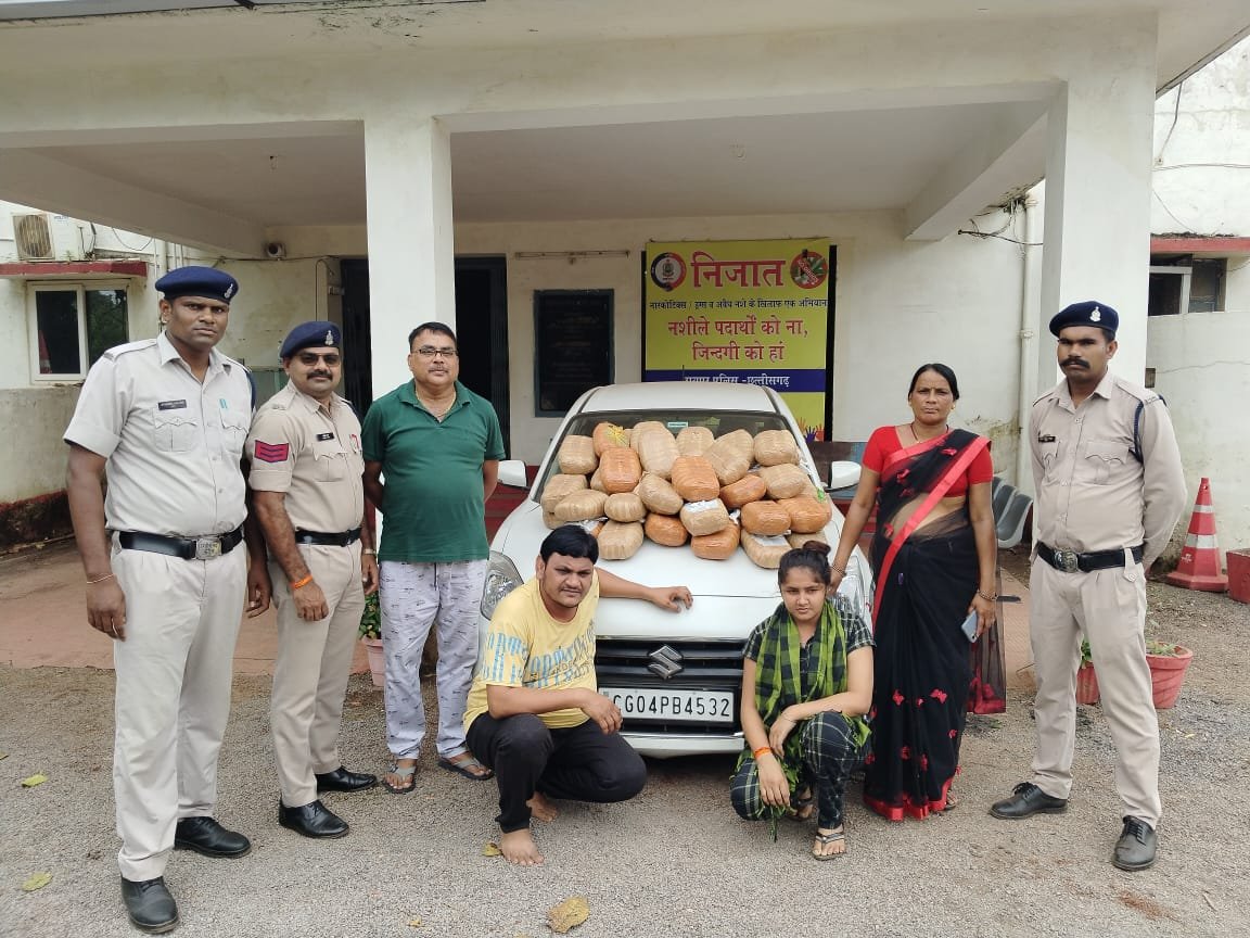 न्यूज डेस्क छत्तीसगढ़: राजधानी रायपुर में ऑपरेशन निजात के तहत नशे के सौदागरों के खिलाफ बड़ी कार्यवाही. गांजा तस्करी करने वाले बंटी बबली गिफ्तार. गांजा तस्कर सुनील अग्रवाल पुलिस को गुमराह करने के लिए अपनी महिला साथी के साथ गांजा तस्करी करते गिरफ्तार. पुलिस ने स्विफ्ट डिजायर कार से करीब 50 किलो से ज्यादा गांजा किया जब्त. जब्त कार समेत गांजे की कीमत करीब 15 लाख रुपए. उड़ीसा से रायपुर लाते हुए मंदिर हसौद में पुलिस ने किया गिरफ्तार. मंदिर हसौद थाना पुलिस की कार्यवाही।