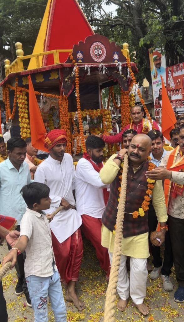 न्यूज डेस्क मध्यप्रदेश रिपोर्ट-अनिल उपाध्याय : खातेगांव नगर में कृष्ण जन्माष्टमी का पर्व हर्षोल्लास के साथ मनाया गया। । प्रति वर्ष अनुसार इस वर्ष भी यादव समाज की ओर से भव्य शोभायात्रा निकाली गई। विभिन्न जीवंत झांकियों के माध्यम से अलग-अलग संदेश दिए गए।यादव समाज की ओर से हर वर्ष झांकियों के माध्यम से कुछ नया करने का प्रयास रहता है। जगन्नाथपुरी की तर्ज पर लकड़ी का रथ तैयार करवाया गया। जिस पर लड्डू गोपाल विराजित थे और समाज के युवा इस रथ को रस्सी के सहारे खींच रहे थे। रथ को विधायक आशीष शर्मा ने भी खींचा और जय श्री कृष्ण जय कारे लगाए।शोभायात्रा यादव मोहल्ला स्थित राधाकृष्ण मंदिर से शुरू होकर नगर के प्रमुख मार्गों से होते हुए कृष्ण मंदिर पहुंची। जहां भगवान श्रीकृष्ण को नए वस्त्र अर्पण किए गए। जिसके बाद राधा कृष्ण मंदिर पहुंचकर शोभायात्रा का समापन हुआ।पूरे यात्रा मार्ग पर अनेक सामाजिक, राजनैतिक और सांस्कृतिक संगठनों ने पुष्प वर्षा कर स्वागत किया। जवाहर चौक पर विधायक आशीष शर्मा, नप अध्यक्ष सारिका नरेंद्र चौधरी के नेतृत्व में स्वागत किया गया। चल समारोह को लेकर पुलिस प्रशासन के साथ-साथ समाज के युवा वरिष्ठ जनों ने व्यवस्था संभाले रखी।ये झांकियां थी शोभायात्रा में शामिल