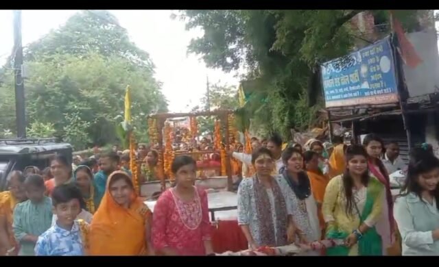रांझी मैं माताओं, बहनों ने अपने हाथो से भगवान श्रीकृष्ण जी का रथ खींच कर शोभा यात्रा निकाली
