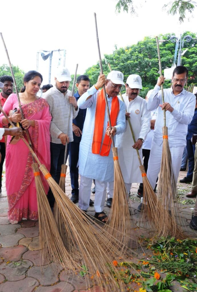 रायपुर:. मुख्यमंत्री विष्णु देव साय ने आज रायपुर के तेलीबांधा तालाब परिसर में आयोजित कार्यक्रम में ‘स्वच्छता ही सेवा’ पखवाड़ा का राज्य स्तरीय शुभारंभ किया। उन्होंने कार्यक्रम में नागरिकों को स्वच्छता की शपथ दिलाई और तेलीबांधा तालाब परिसर में झाड़ू लगाकर सफाई की। उन्होंने स्वच्छता दीदियों तथा शहर को स्वच्छ बनाने में सहभागिता देने वाले सामाजिक संस्थाओं ग्रीन आर्मी, बंच ऑफ फूल्स, कुछ फर्ज हमारा भी और एवेंजर्स ग्रुप के साथ ही समाज सेविका श्रीमती शुभांगी आप्टे को सम्मानित किया। मुख्यमंत्री ने ‘स्वच्छता ही सेवा’ पखवाड़ा के शुभारंभ पर आयोजित स्वच्छता मैराथन को हरी झंडी दिखाकर रवाना किया। उन्होंने नए स्वच्छता वाहनों को भी हरी झंडी दिखाकर रवाना किया। विधायक सर्वश्री मोतीलाल साहू, पुरंदर मिश्रा और अनुज शर्मा तथा महापौर एजाज ढेबर भी कार्यक्रम में शामिल हुए।