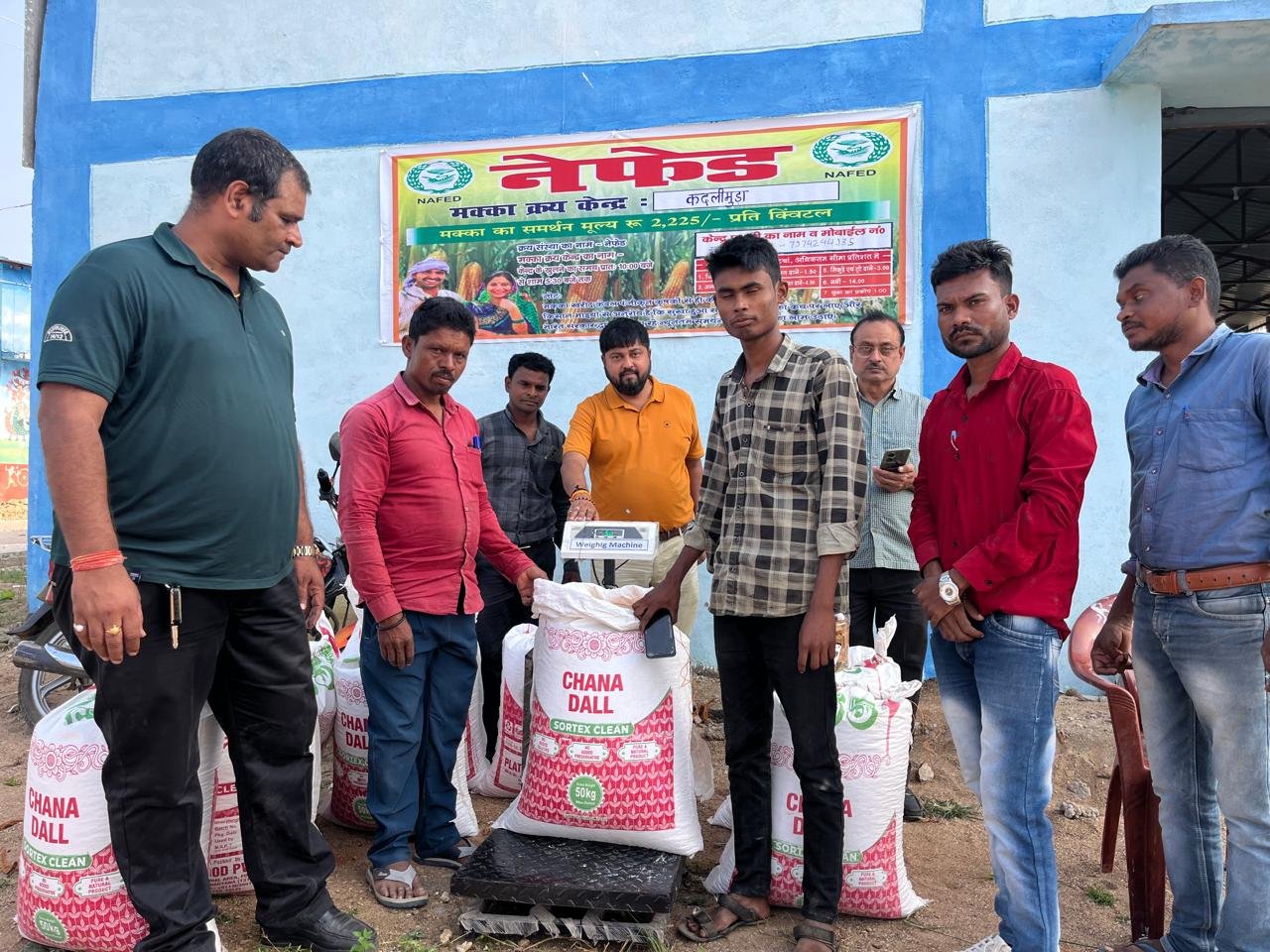 गरियाबंद – भारतीय राष्ट्रीय कृषि सहकारी विपणन संघ (नैफेड) के द्वारा इस बार जिले के देवभोग, अमलीपदर, मैनपुर तहसील में अपनी एंट्री शुरू कर दी है जिसमें किसानों से एमएसपी दर पर मक्के की खरीदी करने जा रही है इसके लिए नेफेड ने बकायदा व्यापक रूप से प्रचार प्रसार भी किया है व किसानों का पंजीयन करवा कर मक्के के खरीदी का श्री गणेश कर लिया है खरीदी केंद्र कदलीमुड़ा में शनिवार को भारतीय राष्ट्रीय कृषि सहकारी विपणन संघ रायपुर के सहायक प्रबंधक पीके द्विवेदी के मुख्य आतिथ्य में खरीदी की शुरुवात की गई कदलीमुड़ा के किसान पदमन बीसी के द्वारा मक्का खरीदी केंद्र कदलीमुड़ा में लाकर बेच सकते है किसानों को मक्का प्रति क्विंटल 2 हजार 225 रुपए के दर से ऑनलाइन भुगतान की जाएगी वहीं इस अवसर पर नेफेड के सहायक प्रबंधक पीके द्विवेदी ने यह बताया कि सभी किसानों का मक्का खरीदी की जाएगी मक्के की फसल के बाद किसानों का दलहन तिलहल फसल भी नेफेड एमएसपी दर पर खरीदी करने वाली है किसान किसी भी कोचिया व व्यापारी के बहकावे में नहीं आए बेझिझक मक्का खरीदी केंद्र कदलीमुड़ा में आकर पंजीयन करवा कर अपना मक्का बेचे वही इस अवसर पर हीरा मां फॉर्मर प्रोड्यूसर कंपनी के प्रबंध संचालक संतोष पाण्डेय , संचालक आशीष शर्मा , मक्का खरीदी प्रभारी सुनील नेताम , कम्प्यूटर ऑपरेटर ढानिक कुमार , दोलन नेताम , गौतम नागेश प्रमुख रूप से उपस्थित रहे।