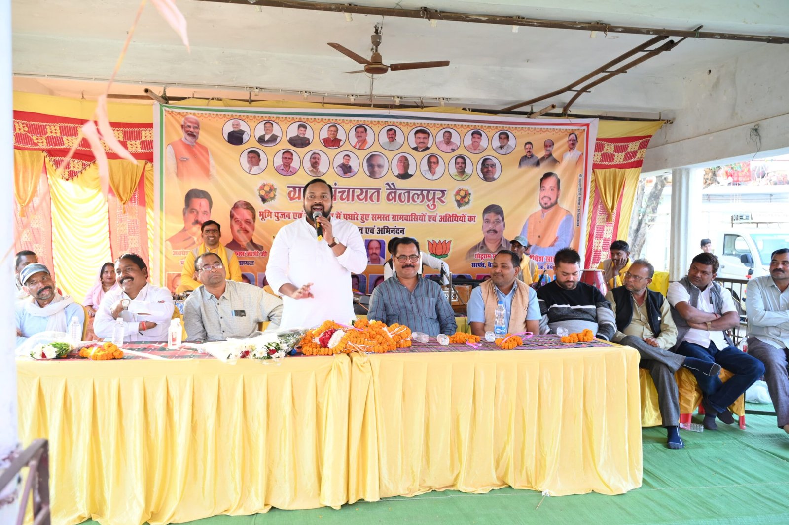 रिपोर्टर परमेश्वर यादव बेमेतरा : क्षेत्र की प्रगति का आधार,सड़कों और विकाश कार्यों का विस्तार इस कथन को चरितार्ध करते हुए आज ग्राम पंचायत बैजलपुर में ग्रामवासियो के साथ बेमेतरा विधायक दीपेश साहू ने सीसी रोड निर्माण सामुदायिक भवन, रंग मंच, नाली निर्माण जैसे लगभग 70 लाख से अधिक राशि के विकाश कार्यों का लोकार्पण एवं भूमि पूजन किया ll जिसमे ग्राम बैजी में सामुदायिक भवन निर्माण लागत राशि 5 लाख रूपये, बैजलपुर में रंग मंच निर्माण लागत राशि 1 लाख रूपये, चंडी मंदिर पास सामुदायिक भवन निर्माण लागत राशि 3 लाख रूपये, कबीर पारा बैजलपुर में सामुदायिक भवन निर्माण लागत राशि 5 लाख रूपये, शासकीय प्राथमिक शाल भवन लागत राशि 15 लाख रूपये, बैजलपुर में सीसी रोड़ निर्माण लागत राशि 4 लाख रुपये, बैजी में सीसी रोड़ निर्माण लागत राशि 3 लाख रूपये, 3 लाख रूपये से रंग मंच निर्माण, सीसी रोड़ निर्माण लागत राशि 10 लाख रूपये, सीसी रोड़ निर्माण लागत राशि 10 लाख रूपये, सीसी रोड़ एवं नाली निर्माण लगत राशि 2 लाख 80 हजार रूपये, नाली निर्माण कार्य लागत राशि 2 लाख 50 हजार रुपये,सीसी रोड़ निर्माण हनुमान मंदिर से छोटू राम साहू के घर तक लागत राशि 4 लाख रूपये, बैजी में सीसी रोड़ लागत राशि 3 लाख रूपये, 3 लाख रूपये की नाली निर्माण, बैजी में सीसी रोड़ निर्माण लागत राशि 3 लाख रूपये के विकास कार्यों का लोकार्पण एवं भूमि पूजन किया llकार्यक्रम में अवधेश सिँह चंदेल पूर्व विधायक,खेमलाल साहू जनपद सदस्य, छोटू राम साहू सरपंच एवं ग्रामीण मंडल अध्यक्ष भाजपा की गरिमामयी उपस्थिति भूमि पूजन एवं लोकार्पण कार्यक्रम संपन्न हुआ। इस दौरान ढ़ोल नागाड़े फटाके की अतिशबाजी के साथ विधायक का भव्य स्वागत किया गया। कार्यक्रम को सम्बोधित करते हुए विधायक दीपेश साहू ने कहा की ग्रामीण क्षेत्रों का विकास ही हमारे विकसित भारत का आधार है। सड़क,बिजली,पानी जैसे मूलभूत सुविधाओं का विस्तार करने के लिए 1 वर्षों में डबल इंजन भाजपा सरकार द्वारा अभूतपूर्व उपलब्धियां अर्जित की है और आगे भी यह विकास यात्रा दोगुनी रफ्तार से जारी रहेगी। इस दौरान डेरहा राम देवांगन, भागीरथी साहू, ओमकार साहू गोलू कोशले, लीला साहू उपसरपंच, वीरेंद्र साहू खेवेन्द्र साहू, लोमन साहू ,संतोष साहू, सुरेश साहू ,छेदन लाल साहू ,पुरन लाल साहू, झारण साहू, चन्द्रिका साहू देवसिंह साहू, कृष्णासाहू, डोमार साहू, गौकरण साहू, समस्त ग्रामवासी भाजपा पदाधिकारी कार्यकर्त्ता गण उपस्थित रहे l