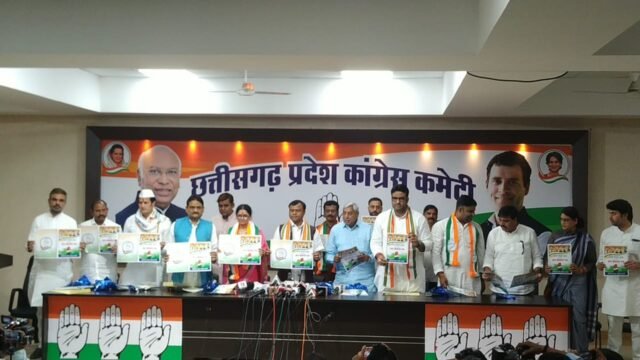 कांग्रेस ने राजधानी सहित प्रदेशभर में जारी किया जन घोषणा पत्र, कन्या विवाह के लिये सामुदायिक भवन निःशुल्क देंगे, कुछ वादे भाजपा की नकल निकले, देखिए घोषणा पत्र
