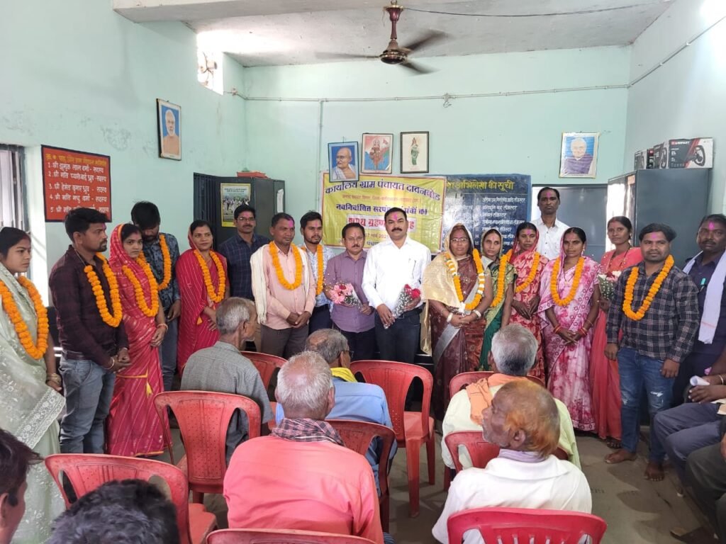 सिमगा: दावनबोड नवनिर्वाचित जनप्रतिनिधियों को सपथ ग्रहण कार्यक्रम में पौधा भेंट