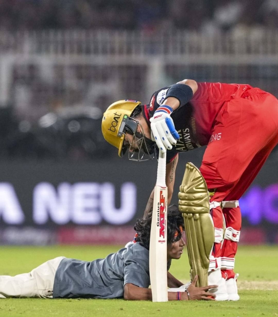 न्यूज डेस्क दिल्ली: आईपीएल 2025 का पहला मुकाबला 22 मार्च को ईडन गार्डन्स में आरसीबी और केकेआर के बीच खेला गया, जहां आरसीबी ने 7 विकेट से शानदार जीत दर्ज की. इस मैच में विराट कोहली ने नाबाद 59 रन की बेहतरीन पारी खेली, जिससे उनकी टीम को जीत मिली. इस रोमांचक मुकाबले में कई यादगार पल देखने को मिले, लेकिन सबसे खास वो लम्हा रहा जब एक फैन कोहली से मिलने के लिए मैदान में घुस आया और उनके पैर छूकर अपने सपने को हकीकत बना लिया.
