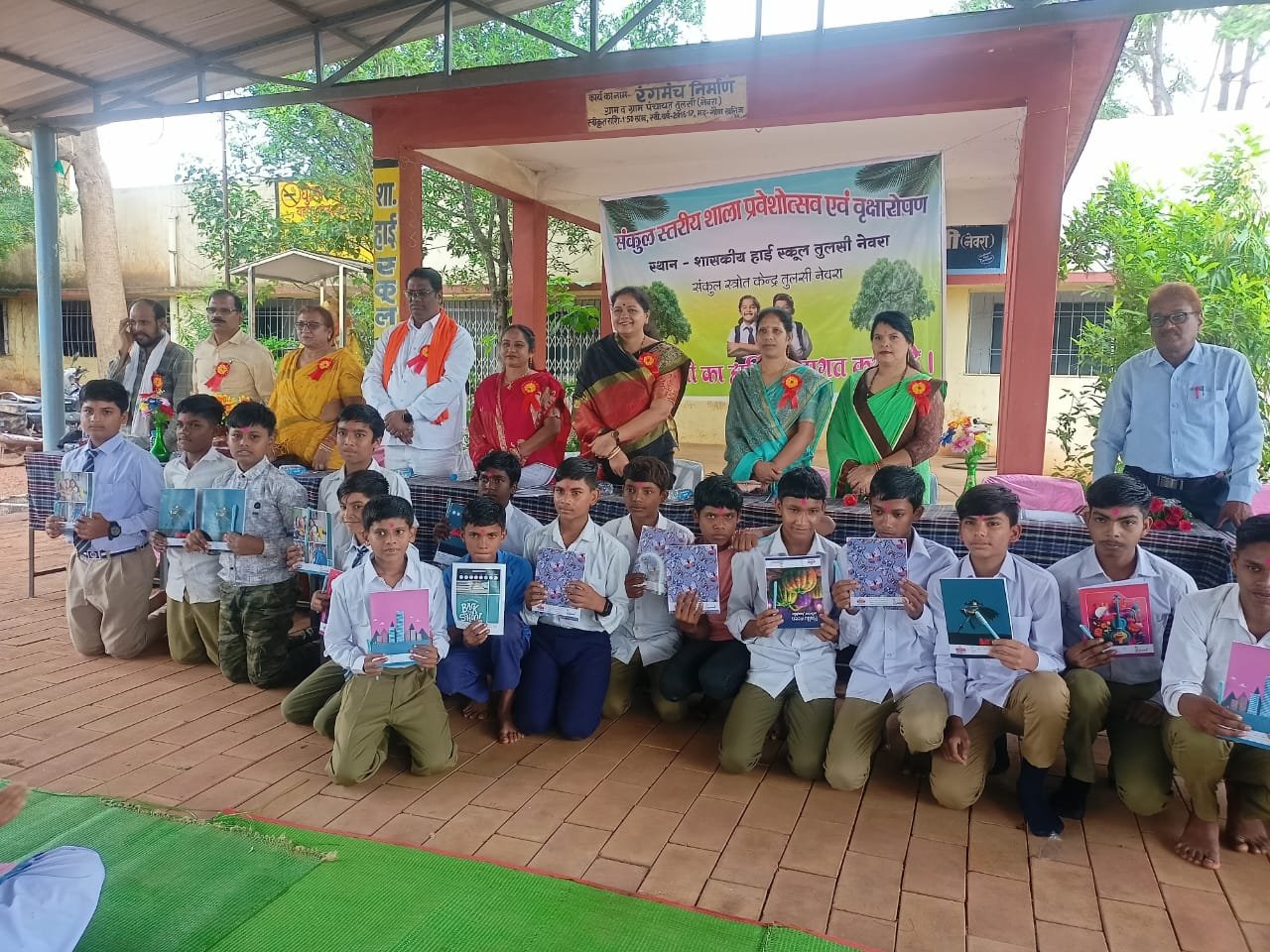तिल्दा नेवरा: शा हाई स्कूल तुलसी नेवरा में संकुल स्तरीय शाला प्रवेशोत्सव एवं वृक्षारोपण कार्यक्रम का आयोजन बड़े ही हर्षोल्लास के साथ किया गया सर्वप्रथम नव प्रवेशी विद्यार्थियों का अतिथियों के द्वारा तिलक लगाकर, कॉपी पेन वितरण कर एवं मिठाई खिलाकर स्वागत किया गया साथ ही मंचस्थ अतिथियों द्वारा विद्यार्थियों को आशीर्वाद संबोधन दिया गया। तत्पश्चात केंद्र सरकार की महत्वाकांक्षी योजना माँ के नाम एक पेड़ भाग 2 के अंतर्गत अतिथियों, संकुल से आए शिक्षक शिक्षिका, शाला परिवार तुलसी नेवरा के शिक्षक शिक्षिका एवं विद्यार्थियों द्वारा वृक्षारोपण किया गया। इस अवसर पर प्रमुख रूप से श्रीमती शैल महेंद्र साहू (जिला पंचायत सदस्य), श्रीमती स्वाती वर्मा (जिला पंचायत सदस्य), गुलाब आडिल (सरपंच ग्रामपंचायत तुलसी), तेजराम वर्मा (सरपंच ग्राम पंचायत कोहका), अनुराधा वर्मा (अध्यक्ष SMDC), कु मनीषा वर्मा (उपसरपंच ग्राम पंचायत तुलसी), संकुल एवं हाई स्कूल तुलसी नेवरा के समस्त शिक्षक शिक्षिका एवं गणमान्य अतिथि गण उपस्थित रहे। कार्यक्रम के संयोजक सुरेंद्र वर्मा (प्रभारी प्राचार्य), हिमांचल चौबे (संकुल समन्वयक), शाला परिवार हाई स्कूल तुलसी नेवरा के समस्त शिक्षक शिक्षिका के सहयोग व मार्गदर्शन से गौरवपूर्ण ढंग से कार्यक्रम संपन्न हुआ।