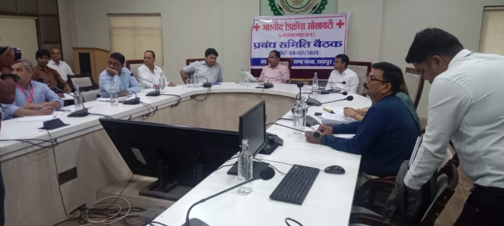 रायपुर छत्तीसगढ़: आज 8 जुलाई 2025 को रेडक्रास सभागार में जिलाधीश रायपुर डॉ गौरव सिंह, जिला रेडक्रास के चेयरमैन राजू शर्मा, वाइस चेयरपर्सन जं. प्रीति नारायण एवं समस्त सदस्यों की उपस्थिति में जिला प्रबंध समिति की बैठक आयोजित की गई।