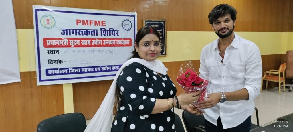तिल्दा नेवरा: आज दिनाक तिल्दा जनपद कार्यालय में उद्योग एवम सहकारिता विभाग के सभापति देवव्रत शर्मा की अध्यक्षता में उद्योग विभाग द्वारा प्रधानमंत्री सूक्ष्म खाद्य प्रसंस्करण उद्यम योजना (PMFME) के तहत आयोजित जागरूकता शिविर का आयोजन किया गया जिसमे जिला रायपुर उद्योग विभाग के असिटेंट डायरेक्टर ,डीआरपी साथियों, एवम ग्रामीण क्षेत्र के ऊधमियो,स्व सहायता समूह की महिलाए सम्मलित हुई ।यह योजना हमारे माननीय प्रधानमंत्री की एक महत्त्वाकांक्षी योजना है, जिसका उद्देश्य है कि ग्रामीण क्षेत्रों में छोटे खाद्य प्रसंस्करण उद्यमियों को औपचारिक रूप देकर उन्हें तकनीकी सहायता, ऋण, प्रशिक्षण और विपणन सुविधाएँ प्रदान की जाएं।शिविर इसी उद्देश्य को लेकर आयोजित किया गया है कि अधिक से अधिक स्थानीय लोग, विशेष रूप से महिलाएं, स्वसहायता समूह, व्यक्तिगत उद्यमी और सहकारी संस्थाएं इस योजना का लाभ उठाएं।सभापति ने कहा मुझे यह कहते हुए गर्व हो रहा है कि हमारे तिल्दा जनपद में अनेक ऐसे लोग हैं जो परंपरागत रूप से अचार, पापड़, मसाला, नमकीन, महुआ, चावल, दलिया आदि के प्रसंस्करण कार्य में लगे हुए हैं। अब वक्त आ गया है कि इन कार्यों को एक संगठित, तकनीकी और व्यावसायिक रूप दिया जाए। PMFME योजना के माध्यम से आप सभी को:अपने व्यवसाय के लिए सरल एवं सब्सिडी युक्त बैंक ऋण,तकनीकी प्रशिक्षण,ब्रांडिंग और पैकेजिंग में सहायता,तथा मार्केटिंग के लिए मार्गदर्शन उपलब्ध करवाया गया ।इस शिविर का मुख्य उद्देशय ग्रामीण क्षेत्र में छोटे उद्योगों के माध्यम से रोजगार एवम आत्मनिर्भरता को अधिक बल मिलेगा जिसके गाँव के लोगो रोजगार के बाहर नहीं जाना पड़ेगा ।