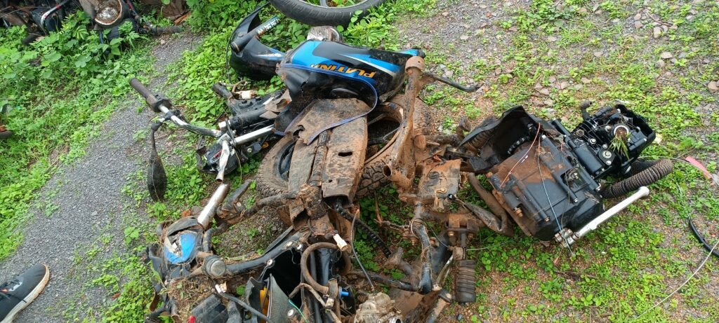खरोरा रायपुर: ग्राम खौलीडबरी निवासी अनिल कुमार ओगर, गांव के ही किशोर पाल और उमेश कुर्रे तीनों उमेश कुर्रे के दोपहिया वाहन प्लेटिना क्रमांक CG04 एनजेड 2613 में खरोरा कृषि दवाई खरीदने गए थे दोपहिया वाहन को उमेश कुर्रे चल रहा था, खरोरा के पहले मोहरेंगा पुल के पास मुख्य मार्ग पर पहुंचे थे तभी तिल्दा की ओर से आ रही ट्रक क्रमांक सीजी 07 ए वी 7776 के चालक द्वारा अपनी ट्रक को विपरीत दिशा से चलाते हुए लाकर उक्त दोपहिया वाहन को सामने से ठोकर मार कर एक्सीडेंट कर दिया, एक्सीडेंट से अनिल कुमार ओगरे, किशन पाल की घटना स्थल पर ही मौत हो गई और उमेश कुर्रे घायल हो गया जिसे उपचार हेतु अस्पताल में भर्ती कराया गया है, वहीं दोपहिया वाहन चकनाचूर हो गया, तस्वीरों में स्पष्ट रूप से देख सकते हैं दोपहिया वाहन प्लेटिना क्रमांक CG04 एन जेड 2613 के एक-एक पुर्जे निकल आया है, बुरी तरह से यह वाहन क्षतिग्रस्त हुआ है।