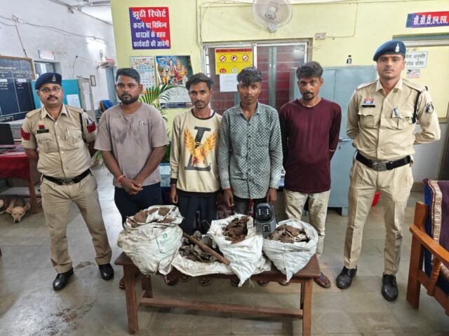 तिल्दा नेवरा: कल 13 अप्रैल को योगेन्द्र नारंग तिल्दा थाना आकर रिपोर्ट दर्ज कराया कि इनके अष्टधातु फैरोमेटल प्लांट ताराशिव में दिनांक 07.08.25 के 18ः00 बजे से 08.08.25 के 06ः00 बजे के मध्य कोई अज्ञात चोर मेन गेट के दीवाल के कुंडी को उखाडकर अंदर प्रवेश कर स्टोर रूम में रखे कच्चा लोहा के सामान तथा स्टोर रूम के उपर लगे एक नग सीसीटीवी कैमरा को चोरी कर ले गये है कि जिसकी रिपोर्ट पर अपराध पंजीबद्ध कर विवेचना पतासाजी कर मुखबिर की सूचना पर ग्राम खम्हरिया के डिगेश कुमार वर्मा, नागेश्वर पाल, आर्यन वर्मा तथा ताराशिव के बाबा विश्वकर्मा के दुकानदार सन्नी कुमार सिंह को हिरासत में लेकर आरोपियो के कब्जे से चोरी गये मशरूका सीसीटीवी कैमरा, कच्चा लोहा का टुकडा को जप्त किया गया तथा आरोपियो को गिरफ्तार कर माननीय न्यायालय पेश कर ज्यूडिशियल रिमांड पर भेजा गया है।