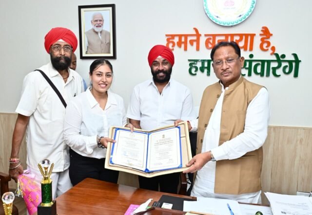 रायपुर : मुख्यमंत्री श्री विष्णु देव साय से राष्ट्रपति रोवर रेंजर अवार्ड से सम्मानित रोवर देवाशीष मखीजा और रेंजर मनतृप्त कौर संधू ने सौजन्य मुलाकात की। मुख्यमंत्री श्री साय ने दोनों प्रतिभाओं को प्रतीक चिन्ह भेंट कर उनकी उपलब्धियों के लिए सम्मानित किया और उनके उज्ज्वल भविष्य की कामना की । उल्लेखनीय है कि राष्ट्रपति श्रीमती द्रौपदी मुर्मू ने 22 जुलाई को राष्ट्रपति भवन, नई दिल्ली में आयोजित विशिष्ट समारोह में छत्तीसगढ़ के रोवर देवाशीष माखीजा, रेंजर मनतृप्त कौर संधू और गाईड कुसुम सिन्हा को अलग-अलग श्रेणियों में सम्मानित किया। श्री देवाशीष ने बताया कि यह गौरवपूर्ण पुरस्कार चार वर्षों के अंतराल में देश भर से चयनित 16 प्रतिभागियों को प्रदान किया गया । गर्व की बात है कि इस बार छत्तीसगढ़ से तीन प्रतिभागियों ने यह उपलब्धि हासिल की। उन्होंने बताया कि इसी क्रम में उन्हें तत्कालीन राज्यपाल श्रीमती अनुसुइया उइके द्वारा राज्यपाल पुरस्कार से भी सम्मानित किया जा चुका है।इस अवसर पर छत्तीसगढ़ राज्य अल्पसंख्यक आयोग के अध्यक्ष श्री अमरजीत सिंह छाबड़ा के साथ रेंजर मनतृप्त कौर के पिता श्री गुरजीत सिंह संधू भी उपस्थित थे।