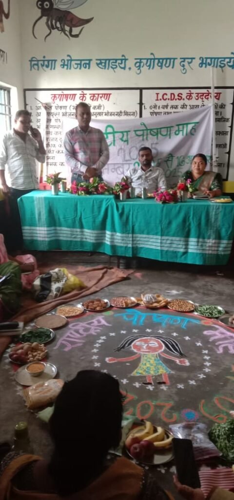 हिरमी – रावन : सिमगा ब्लाक के हिरमी सेक्टर अंतर्गत ग्राम पंचायत हिरमी के स्वास्थ्य केंद्र के पास आंगनबाड़ी केंद्र में राष्ट्रीय पोषण आहार माह कार्यक्रम का आयोजन किया गया।इस दौरान जानकारी देते हुए बताया कि सरकार प्रति वर्ष सितंबर माह में एक से 30 सितंबर तक राष्ट्रीय पोषण माह के रूप में मनाने के लिए आंगनबाड़ी केंद्रों को निर्देश जारी किया गया। क्योंकि गांव में रहने वाले बच्चे कुपोषण के शिकार होते है, जिसके चलते बच्चों के शारीरिक व मानसिक विकास सही ढंग से नहीं हो पाता है। सरकार की योजना के तहत उक्त अभियान के अंतर्गत गरम भोजन, रेडी टू ईट का वितरण कर छोटे बच्चों को कुपोषित होने से बचाना है।पोषण वाटिका विकसित करने और पौधारोपण करने की बात राष्ट्रीय पोषण माह 2021 में मुख्य रूप से सितंबर माह को चार सप्ताह में विभक्त कर अलग-अलग गतिविधियां संचालित करने का आदेश जारी किया गया है। प्रथम सप्ताह में आंगनबाड़ी केंद्रों, स्कूलों ग्राम पंचायतों व अन्य उपलब्ध सामुदायिक स्थानों पर पोषण वाटिका विकसित करने और पौधारोपण करने की बात कही गईं है।सेक्टर सुपरवाइजर श्रीमती सरिता वर्मा,कुभरोद कार्यकर्ता – श्री मती राजेश्वरी वर्मा, श्रीमती रूपा जामलवान श्रीमती दुर्गा जायसवाल,भटभेरा श्रीमती भारती साहू,परसवानी भी विकादित वर्मा,श्रीमती राधा वर्मा,सकलोर,कसहीडीह श्रीमती,सुशील,ओरी बन्दी – श्रीमती सादा पार्ष.