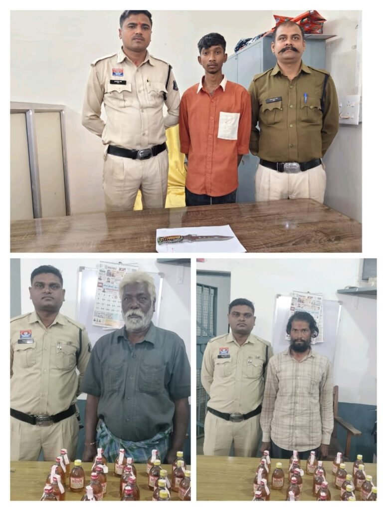 तिल्दा नेवरा: दिनांक 23.11.2025 को मुखबिर से सूचना प्राप्त हुई कि वार्ड क्र0 04 तिल्दा में परदेशी बंजारे नाम का व्यक्ति अवैध रूप से बिक्री करने हेतु शराब रखा हुआ जिस पर रेड कार्यवाही कर आरोपी के कब्जे से 22 पौवा देशी मसाला शराब व बिक्री रकम 300/रू जुमला कीमती 2500/रू जप्त किया जाकर आरोपी को गिरफ्तार किया गया तथा आरोपी के विरूद्ध धारा 34(1)(ख) आबकारी एक्ट का प्रकरण पंजीबद्ध किया गया। (2) दिनांक 23.11.2025 को मुखबिर से सूचना प्राप्त हुई कि शौर्य प्लांट के सामने किरना में संदीप पांडेय नाम का व्यक्ति अवैध रूप से शराब रखकर बिक्री कर रहा है जिस पर रेड कार्यवाही कर आरोपी के कब्जे से 26 पौवा देशी मसाला शराब व बिक्री रकम 350/रूपये जुमला कीमती 2950/रूपये जप्त किया जाकर आरोपी को गिरफ्तार किया गया तथा आरोपी के विरूद्ध धारा 34(1)(ख) आबकारी एक्ट का प्रकरण पंजीबद्ध किया गया। (3) दिनांक 23.11.2025 को मुखबिर से सूचना मिला कि एक व्यक्ति शीतला मंदिर के पास महामाया पारा नेवरा में आम लोगो को चाकू दिखाकर लहराकर डरा धमका रहा है के सूचना पर मौका पहुॅचकर आरोपी रोहित धु्रव निवासी महामाया पारा नेवरा के कब्जे से एक धारदार चाकू को बरामद कर आरोपी के विरूद्ध धारा 25, 27 आम्र्स एक्ट का प्रकरण दर्ज कर आरोपी को ज्यूडिशियल रिमाण्ड पर भेजा गया है। थाना क्षेत्र में भ्रमण के दौरान निगरानी/गुण्डा बदमाश, गिरफ्तारी/स्थायी वारंटी की पतासाजी भ्रमण के दौरान आने जाने वाले राहगीरो जबरन गाली गुप्तार मारपीट पर उतारू होने वाले 06 असमाजिक तत्वों को धारा 170 बीएनएसएस में गिर0 कर एसडीएम न्याया0 तिल्दा नेवरा में पेश किया गया तथा सभी का जेल वारंट जारी होने पर केन्द्रीय जेल रायपुर के लिये रवाना किया गया।