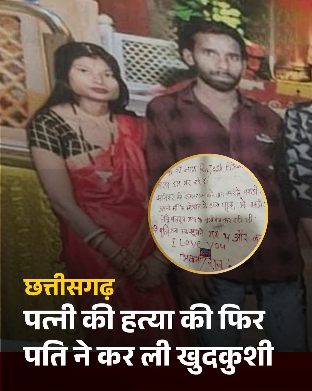 छत्तीसगढ़: बिलासपुर में अटल आवास में एक कमरे से पत्नी की गला घोंटकर हत्या और उसी कमरे में पति का फांसी पर झूलता शव मिला. दीवार पर लिपस्टिक से लिखा सुसाइड नोट और अफेयर के आरोपों ने केस को सनसनीखेज बना दिया. पुलिस जांच में हत्या- सुसाइड की आशंका पर काम किया जा रहा है.