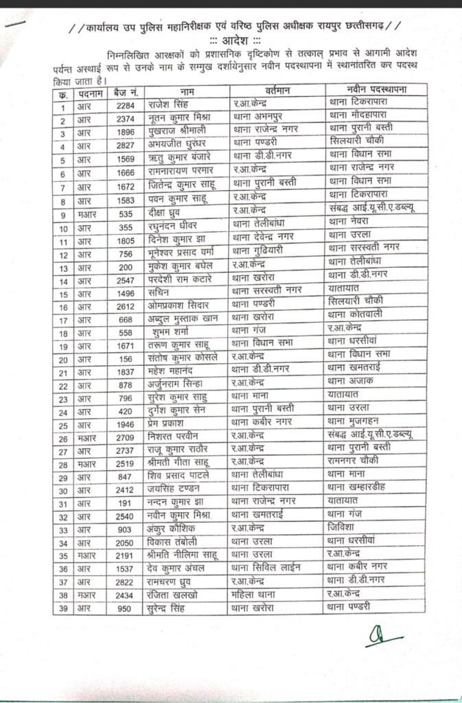 रायपुर पुलिस में बड़ा प्रशासनिक फेरबदल, 80 पुलिसकर्मियों का तबादला आदेश जारी….देखिए सूची