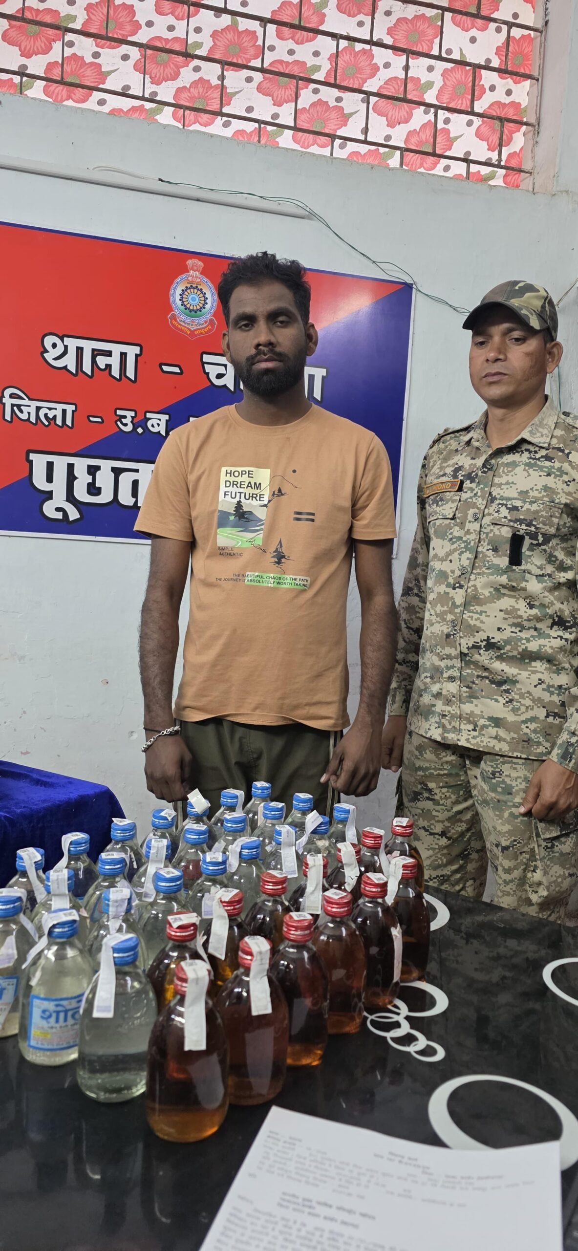 कांकेर : थाना चारामा पुलिस द्वारा अवैध शराब परिवहन के विरुद्ध कार्रवाई की गई।प्राप्त जानकारी के अनुसार, आज दिनांक 07 जनवरी 2026 को मुखबिर से सूचना प्राप्त होने पर थाना चारामा पुलिस द्वारा आवरी चौक, राम जानकी मंदिर के पास नाकाबंदी की गई। नाकाबंदी के दौरान मोटरसाइकिल क्रमांक CG 07 LZ 5457 को रोककर जांच की गई।जांच के दौरान वाहन चालक गुलशन सोनी, पिता अरुण सोनी, उम्र 27 वर्ष, निवासी मचानदूर, थाना चारामा के कब्जे से एक सफेद रंग के थैले में अवैध रूप से परिवहन की जा रही शराब बरामद की गई। बरामद शराब में 13 नग मसाला देसी मदिरा एवं 25 नग प्लेन देसी मदिरा, कुल मात्रा 6.840 लीटर पाई गई।आरोपी द्वारा उक्त मदिरा को अवैध रूप से बिक्री हेतु परिवहन किया जा रहा था। मामले में आरोपी के विरुद्ध धारा 34(2) आबकारी अधिनियम के तहत कार्यवाही कर उसे गिरफ्तार किया गया।थाना चारामा पुलिस द्वारा अवैध शराब के विरुद्ध आगे भी सख्त कार्रवाई जारी रहेगी।