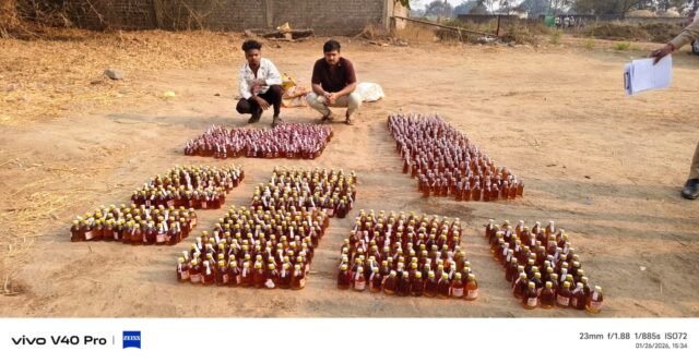 खरोरा : एंटी क्राईम एण्ड सायबर युनिट रायपुर एवं थाना खरोरा पुलिस द्वारा अत्यधिक मात्रा में अवैध शराब के साथ आरोपियों को किया गया गिरफ्तार आरोपियों के संयुक्त कब्जे से कुल 1008 पौवा शराब किया गया जप्त आरोपियों द्वारा अवैध रूप से शराब को बिक्री हेतू किया गया था डम्प आरोपी अजय धीवर के कब्जे से अवैध शराब संग्रहण में इस्तेमाल स्कूटी को किया गया जप्त। इस प्रकार है कि दिनांक 26/01/2026 को मुखबीर से विश्वसनीय सूचना मिला है कि ग्राम सारागांव निवासी हालेश्वर साहू तथा चन्द्रशेखर साहू अपने चाचा मोहन साहू के ब्यारा में अत्यधिक मात्रा में शराब रखा हुआ है जो ग्राहको की तलाश कर शराब बिक्री कर रहा है जिस पर तस्दीक हेतु थाना खरोरा पुलिस पार्टी एवं सायबर क्राईम युनिट के साथ संयुक्त रूप से मुखबीर द्वारा बताये स्थान पर रेड कार्यवाही कर आरोपी हालेश्वर कुमार साहू एवं चन्द्रशेखर साहू को अवैध रूप से शराब रखकर बिक्री करते हुए पकड़ा गया। जिन्हें शराब रखने के संबंध में नोटिस दिया गया जो कोई कागजात पेश नही करने पर आरोपियो के संयुक्त रूप से कब्जे में एक सफेद रंग के प्लास्टिक बोरी में रखे 120 पौवा देशी मदिरा मसाला शोले जिसके प्रत्येक पौवा में 180-180 मि.ली. शराब भरी हुई मात्रा 21 लीटर 600 मि.ली. किमती 12000/₹, एक सफेद रंग के प्लास्टिक बोरी में रखे 120 पौवा देशी मदिरा मसाला शोले जिसके प्रत्येक पौवा में 180-180 मि.ली. शराब भरी हुई मात्रा 21 लीटर 600 मि.ली. किमती 12000 रूपये, एक सफेद रंग के प्लास्टिक बोरी में रखे 120 पौवा देशी मदिरा मसाला शोले जिसके प्रत्येक पौवा में 180-180 मि.ली. शराब भरी हुई मात्रा 21 लीटर 600 मि.ली. किमती 12000 रूपये, एक सफेद रंग के प्लास्टिक बोरी में रखे 120 पौवा देशी मदिरा मसाला शोले जिसके प्रत्येक पौवा में 180-180 मि.ली. शराब भरी हुई मात्रा 21 लीटर 600 मि.ली. किमती 12000 रूपये, एक सफेद रंग के प्लास्टिक बोरी में रखे 125 पौवा देशी मदिरा मसाला शेरा जिसके प्रत्येक पौवा में 180-180 मि.ली. शराब भरी हुई मात्रा 22 लीटर 500 मि.ली. किमती 15000/-₹, एक सफेद रंग के प्लास्टिक बोरी में रखे 125 पौवा देशी मदिरा मसाला शेरा जिसके प्रत्येक पौवा में 180-180 मि.ली. शराब भरी हुई मात्रा 22 लीटर 500 मि.ली. किमती 15000/-₹, एक पीला रंग के प्लास्टिक बोरी में रखे 120 पौवा गोवा स्पेशल अंग्रेजी व्हीसकी जिसके प्रत्येक पौवा में 180-180 मि.ली.शराब भरी हुई मात्रा 21 लीटर 600 मि.ली. किमती 14400/-₹, एक पीला रंग के प्लास्टिक बोरी में रखे 120 पौवा गोवा स्पेशल अंग्रेजी व्हीसकी जिसके प्रत्येक पौवा में 180-180 मि.ली. शराब भरी हुई मात्रा 21 लीटर 600 मि.ली. किमती 14400/-₹, एक मटमैला रंग के विमल पान मसाला के कपड़ा में रखे 38 पौवा गोल्डन गोवा स्पेशल अंग्रेजी व्हीसकी जिसके प्रत्येक पौवा में 180-180 मि.ली. शराब भरी हुई मात्रा 06 लीटर 840 मि.ली. किमती 4560/-₹, जुमला मात्रा 1,81 लीटर 440 मि.ल