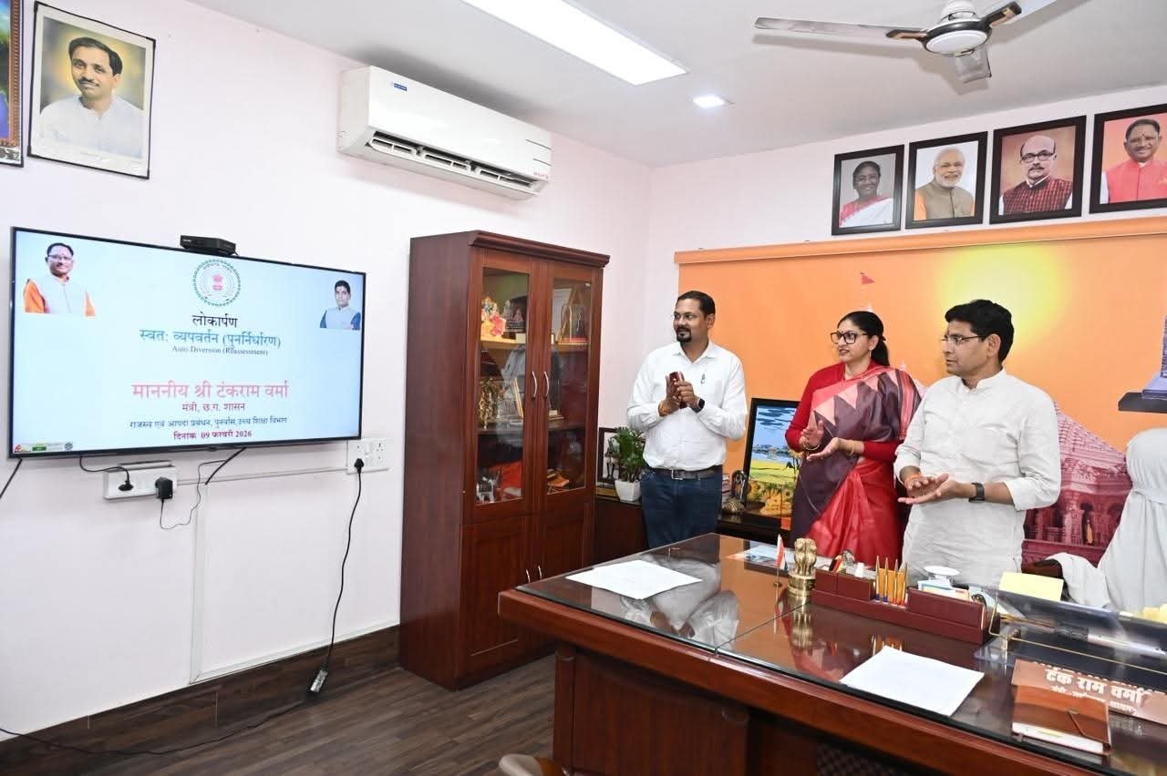 रायपुर: मुख्यमंत्री विष्णुदेव साय के नेतृत्व में छत्तीसगढ़ में डिजिटल गवर्नेंस को और अधिक सशक्त बनाते हुए आज नागरिक सुविधा के क्षेत्र में दो महत्वपूर्ण और अभिनव पहल का शुभारंभ किया गया। राजस्व मंत्री टंकराम वर्मा ने अपने निवास कार्यालय में भुइयां व्हाट्सएप चैटबॉट सेवा तथा ऑटो-डाइवर्ज़न (पुनर्निर्धारण) सुविधा का औपचारिक राज्यव्यापी शुभारंभ किया। ये दोनों डिजिटल पहल राज्य में ई-गवर्नेंस, पारदर्शिता और नागरिक-केंद्रित प्रशासन की दिशा में एक बड़ा कदम हैं। इन सेवाओं के माध्यम से नागरिकों को अब राजस्व संबंधी सेवाओं के लिए कार्यालयों के चक्कर नहीं लगाने पड़ेंगे और कार्यवाही पूरी तरह सरल, तेज़ और पारदर्शी होगी।भुइयां व्हाट्सएप चैटबॉट सेवा के माध्यम से छत्तीसगढ़ के नागरिक अब अपने मोबाइल फोन पर ही विभिन्न राजस्व सेवाओं की जानकारी और सुविधा प्राप्त कर सकेंगे। यह सेवा नागरिकों को डिजिटल माध्यम से सीधे शासन से जोड़ने का एक सशक्त प्रयास है, जो राज्य की डिजिटल रूपांतरण यात्रा को नई गति प्रदान करेगी। इस चैटबॉट सेवा के अंतर्गत नागरिकों को जमीन संबंधी जानकारी, राजस्व न्यायालय से संबंधित जानकारी, मोबाइल नंबर जोड़ने की सुविधा, आधार नंबर जोड़ने के लिए ऑनलाइन आवेदन, किसान किताब के लिए आवेदन, नामांतरण के लिए आवेदन सहित अन्य नागरिक हितैषी राजस्व सेवाएँ उपलब्ध कराई जा रही हैं। नागरिक इन सभी सेवाओं का लाभ घर बैठे केवल एक व्हाट्सएप संदेश के माध्यम से ले सकते हैं। इस सेवा का उपयोग करने के लिए नागरिक 7289056060 नंबर को अपने मोबाइल में सेव कर व्हाट्सऐप पर संदेश भेज सकते हैं, जिसके पश्चात चैटबॉट तुरंत आवश्यक जानकारी एवं सेवाएं उपलब्ध कराएगा।इसी क्रम में राजस्व मंत्री टंकराम वर्मा ने एक और महत्वपूर्ण डिजिटल पहल के रूप में ऑटो-डाइवर्ज़न (पुनर्निर्धारण) सुविधा का भी शुभारंभ किया। यह सुविधा भूमि उपयोग परिवर्तन की प्रक्रिया को पूरी तरह से ऑनलाइन, पारदर्शी और समयबद्ध बनाकर नागरिकों को बड़ी राहत प्रदान करेगी।इस नई व्यवस्था के अंतर्गत अब नागरिक बिना किसी कागजी कार्रवाई और कार्यालयों के चक्कर लगाए अपने भूमि उपयोग परिवर्तन के लिए ऑनलाइन आवेदन कर सकेंगे। पोर्टल पर भूमि चयन से लेकर प्रीमियम एवं शुल्क की गणना तक की पूरी प्रक्रिया स्वचालित और सहज बनाई गई है।भुगतान प्रक्रिया को सरल और सुरक्षित बनाने के लिए ई-चालान की सुविधा उपलब्ध कराई गई है। आवेदन के साथ छह आवश्यक दस्तावेजों का ऑनलाइन अपलोड अनिवार्य किया गया है, जिससे प्रक्रिया में पूर्ण पारदर्शिता सुनिश्चित हो सके।आवेदन जमा होते ही वह स्वतः संबंधित सक्षम अधिकारी के पास परीक्षण के लिए प्रेषित हो जाएगा। सक्षम अधिकारी को 15 दिनों के भीतर आवेदन 