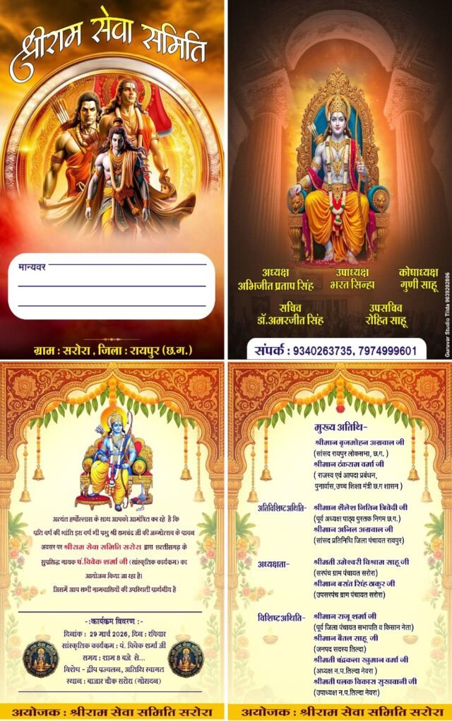 तिल्दा के सरोरा में धूमधाम से मनेगा श्री राम जन्मोत्सव, सांस्कृतिक संध्या में सुर बिखेरेंगे पं. विवेक शर्मा